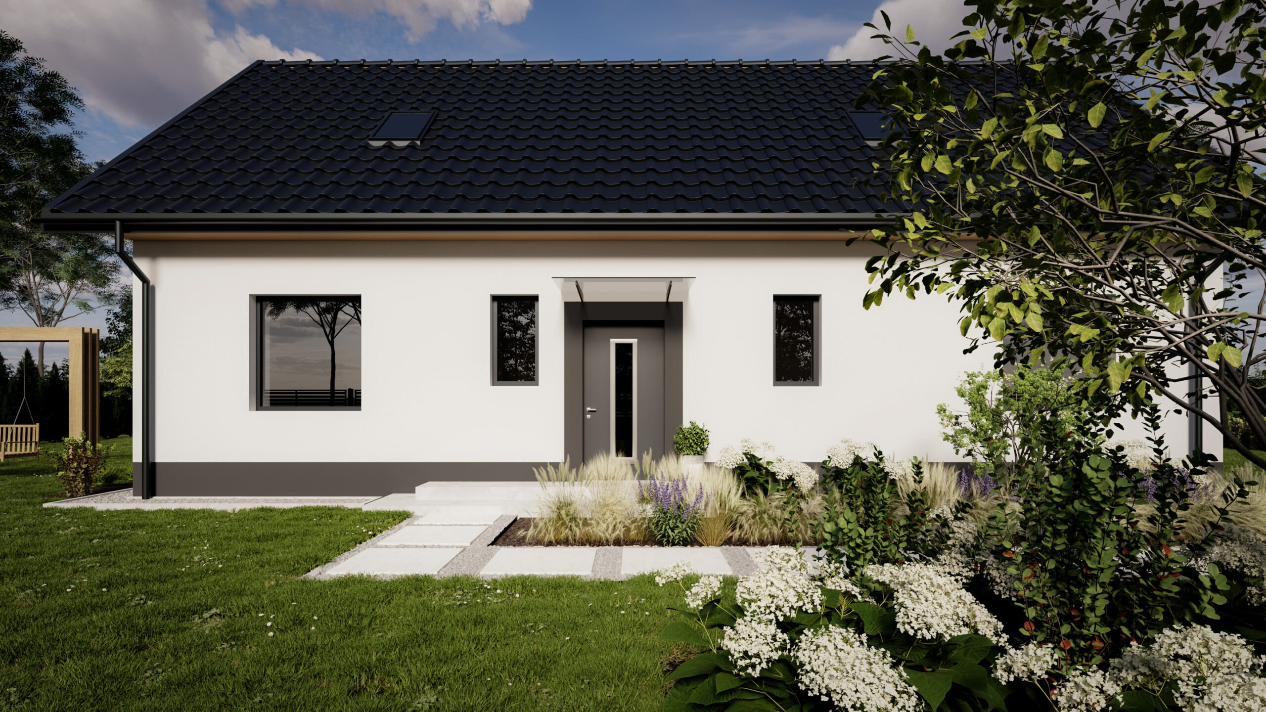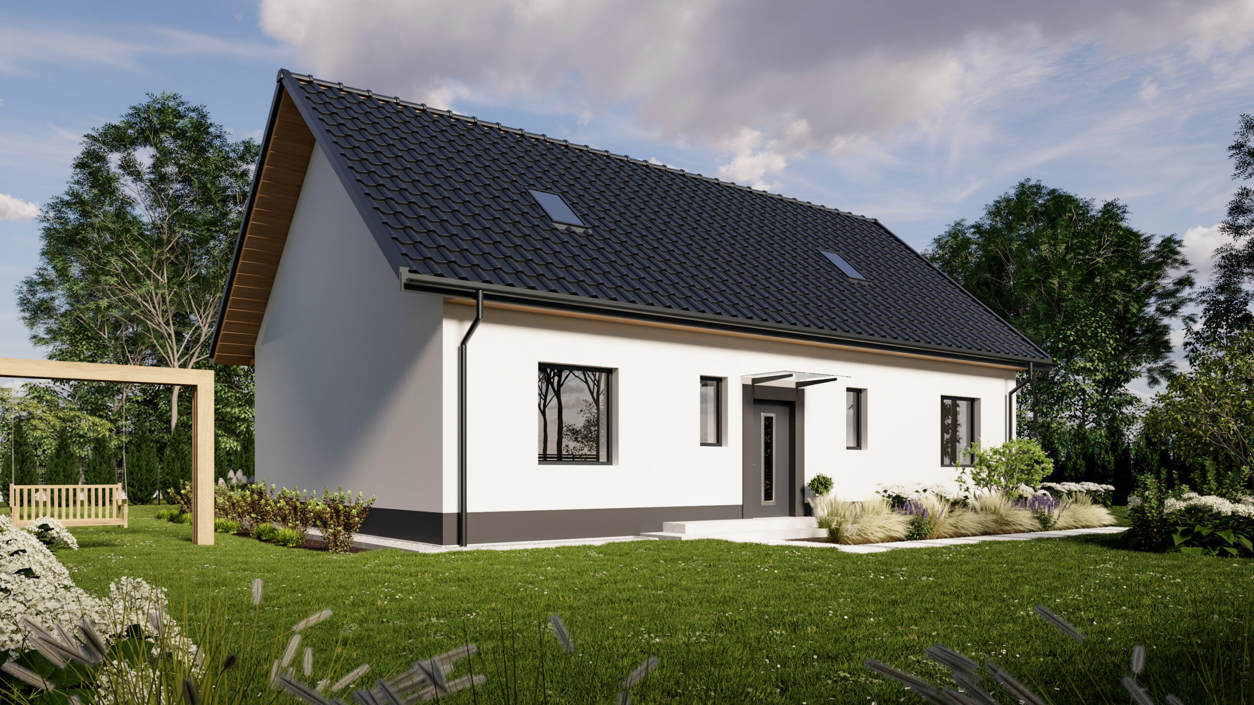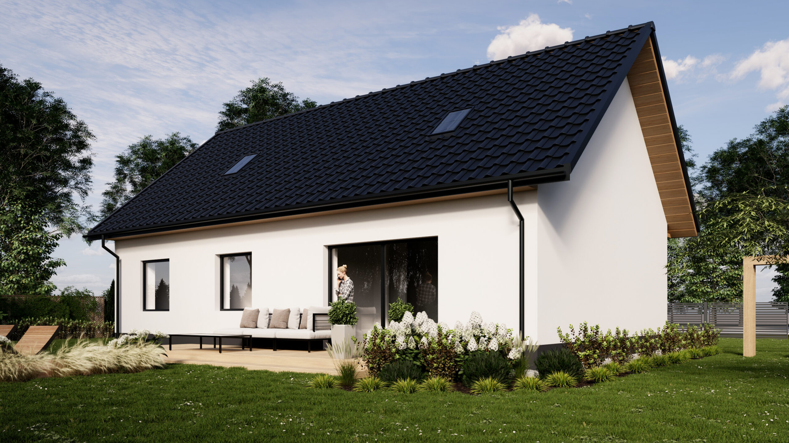 Taki układ jest niezwykle funkcjonalny. Strefa frontowa (6 metrów) tworzy reprezentacyjne podejście do domu, zapewniając bufor od ulicy. Największą zaletą jest bardzo duży, słoneczny ogród z tyłu posesji (ponad 16 metrów długości). Taka przestrzeń daje ogromne możliwości aranżacyjne – idealnie nadaje się na stworzenie rozległego tarasu, miejsca na basen, placu zabaw dla dzieci lub po prostu cichej strefy relaksu. Szerokość działki (ponad 20 metrów) gwarantuje poczucie prywatności i komfortu.