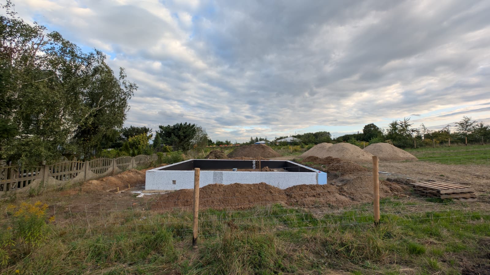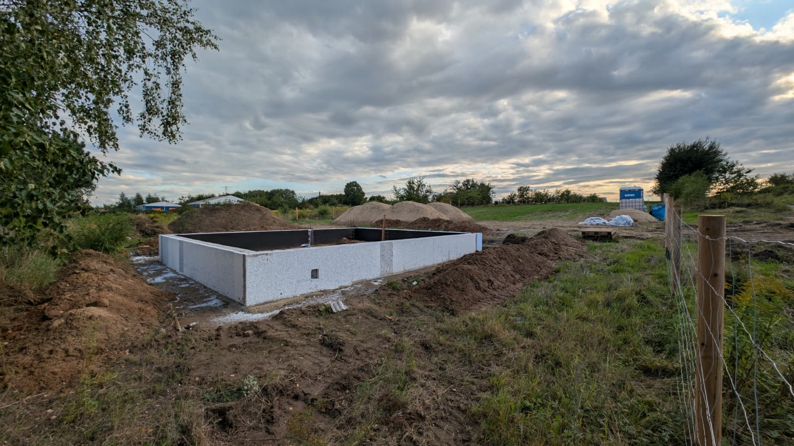 Jesteśmy na placu budowy, praca wre, a fundamenty pierwszego domu piętrowego z naszej oferty (tego fantastycznego projektu 110 m²!) już solidnie stoją.